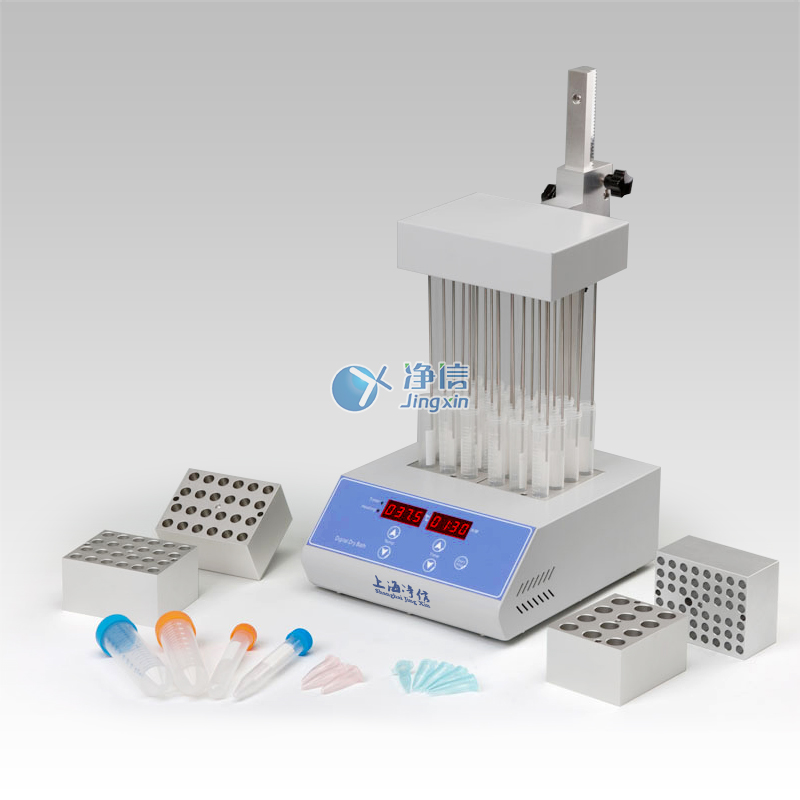 JXDC-20氮气吹扫仪采用微电脑和PID模糊控制技术,利用铝材料做为导热介质,以代替传统的水浴装置,具有使用方便、控温范围大、精度高等特点。其工作原理是将氮气或空气连续、可控地吹到加热样品表面,并根据被浓缩溶剂的蒸发速度和沸点,设定加热温度,实现大量样品的浓缩。