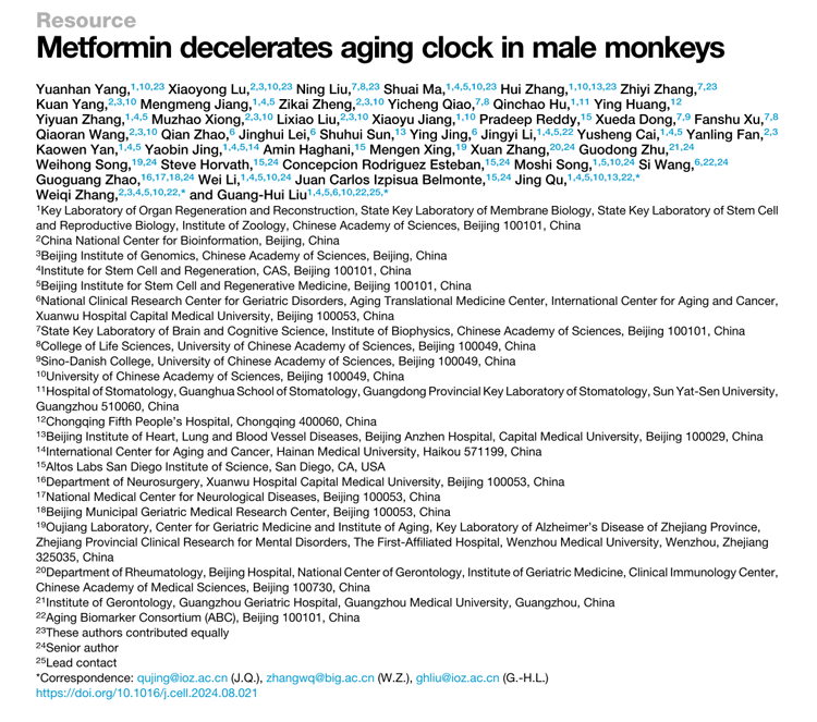 随着全球人口老龄化的加剧,衰老及其相关疾病的防治成为亟待解决的重大科学问题。二甲双胍作为一种经典的降糖药物,近年来被发现具有显著的抗衰老效果。然而,其具体作用机制尚不明确。为了深入研究二甲双胍对灵长类动物衰老的影响,刘光慧团队展开了长达8年的研究。