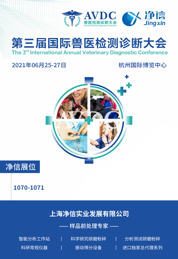 非常感谢您对上海净信长期以来的关注和支持!我司将于2021年6月25日~6月27日参加由中国农业国际合作促进会主办的“第三届国际兽医检测诊断大会暨亚洲兽用医疗器械及药品展览会”。